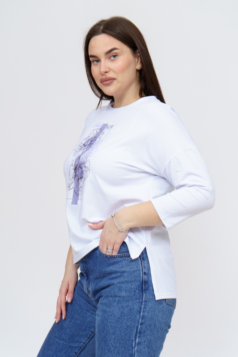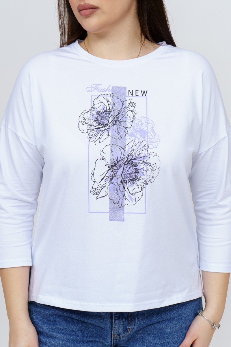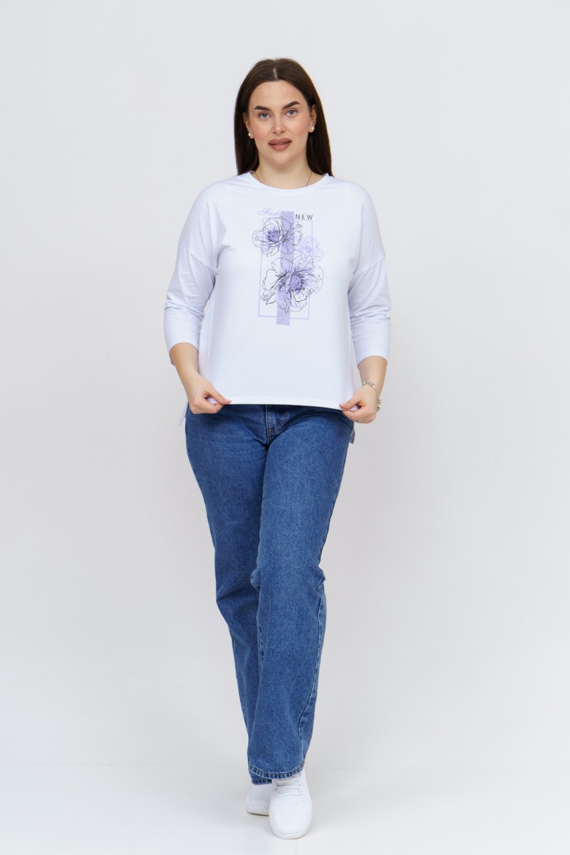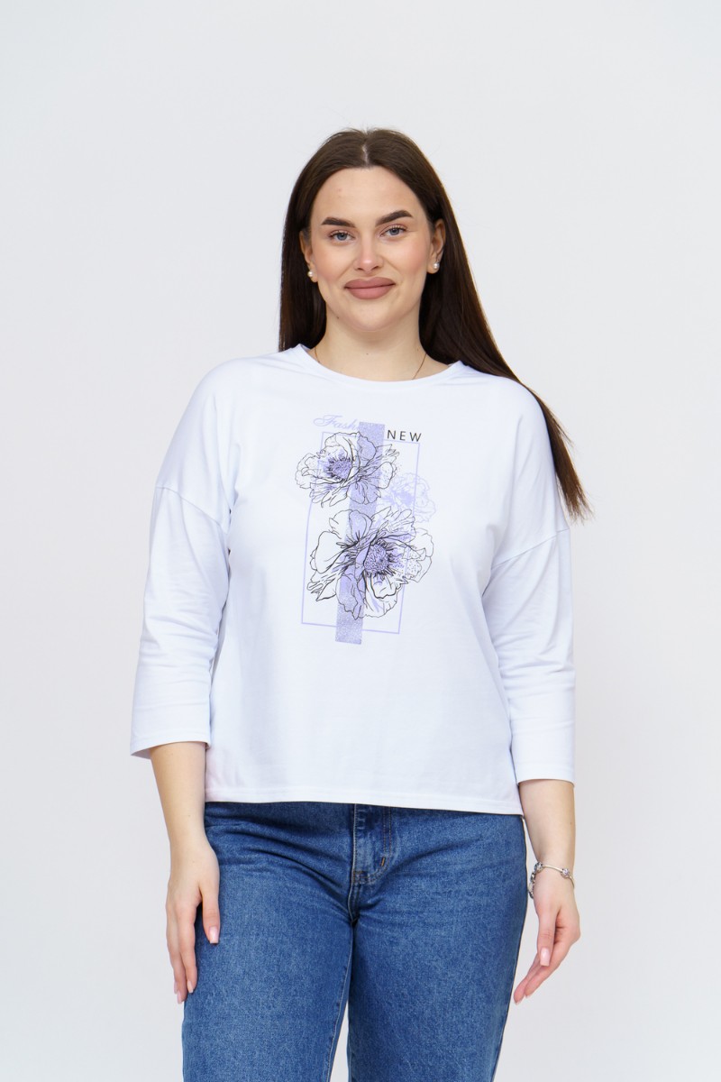 Лонгслив женский "Стиль" кулирка с лайкрой (р-ры: 46-64) белый