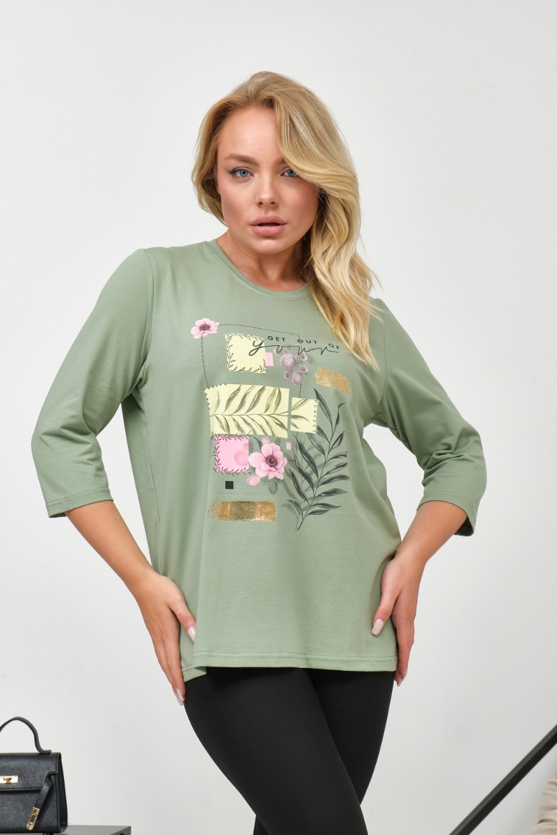 Лонгслив женский "Элис" кулирка с лайкрой (р-ры: 46-64) фисташка