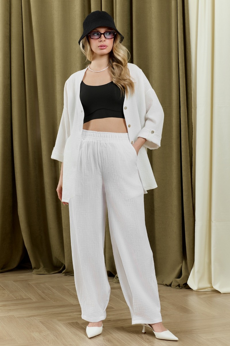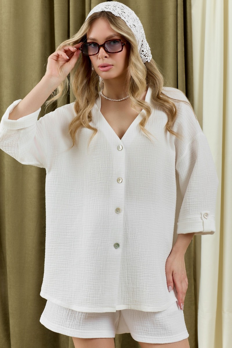 Блузка женская "Асель-2" фактурное полотно (р-ры: 44-54) белый