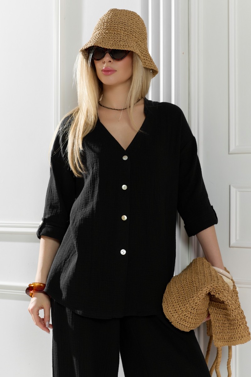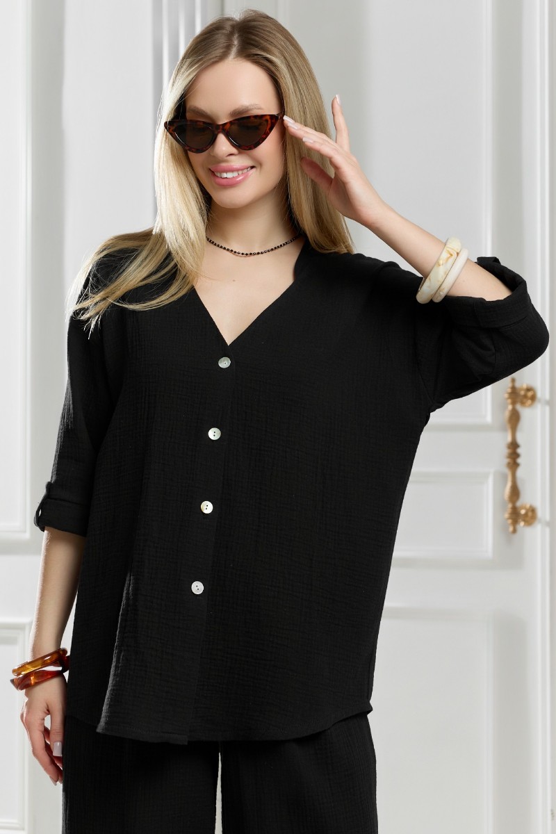 Блузка женская "Асель-2" фактурное полотно (р-ры: 44-54) черный