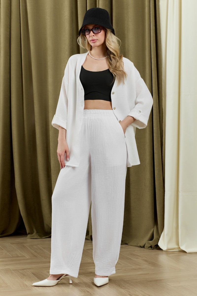 Брюки женские "Асель-3" фактурное полотно (р-ры: 44-54) белый