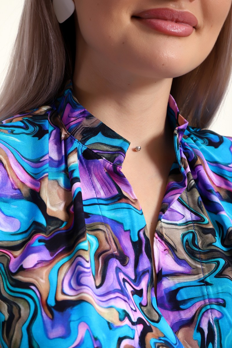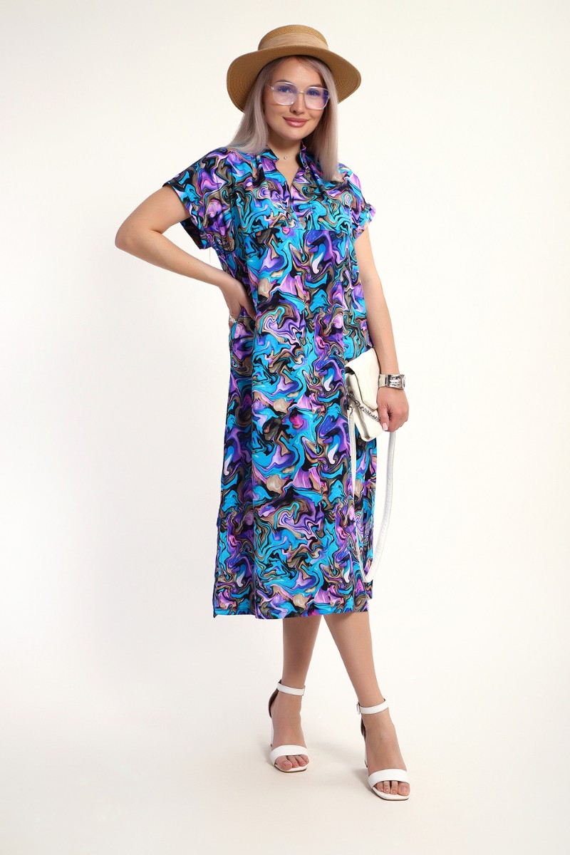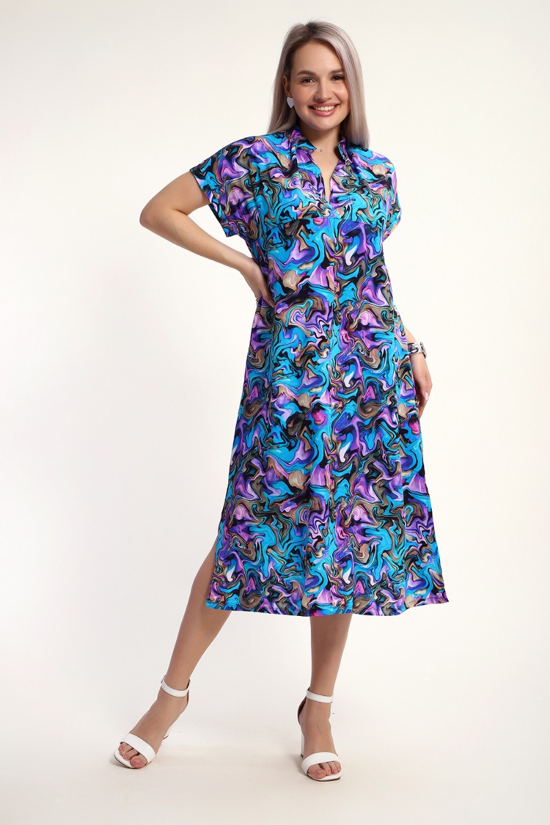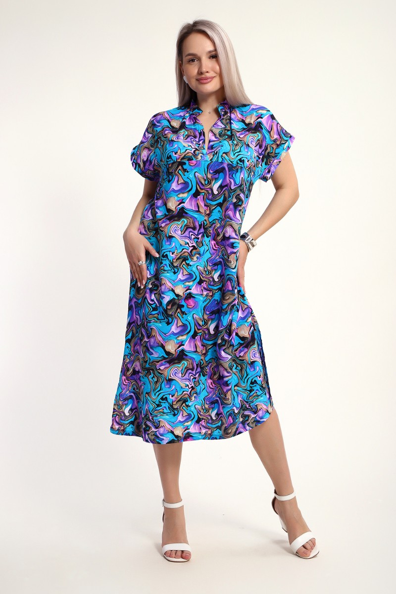 Представляем Вашему вниманию легкое невесомое женственное платье из штапеля, которое подойдет для дам, предпочитающих одежду из натуральных тканей. Стопроцентная вискоза в составе штапеля обеспечивает комфорт и удобство при носке, дышащая ткань отлично выручает в летнюю жару. Свободное длинное платье прямого кроя, расклешенное к низу - это находка для жещнин с любой фигурой и любого возраста. Воротник-стойка и V-образный вырез горловины придает изделию шарма и изысканности. Спущенный рукав оканчивается небольшим манжетом, по подолу в боковых швах обработаны разрезы. Это платье подойдет для любого случая - на пляж, на прогулку, а также для офиса.
