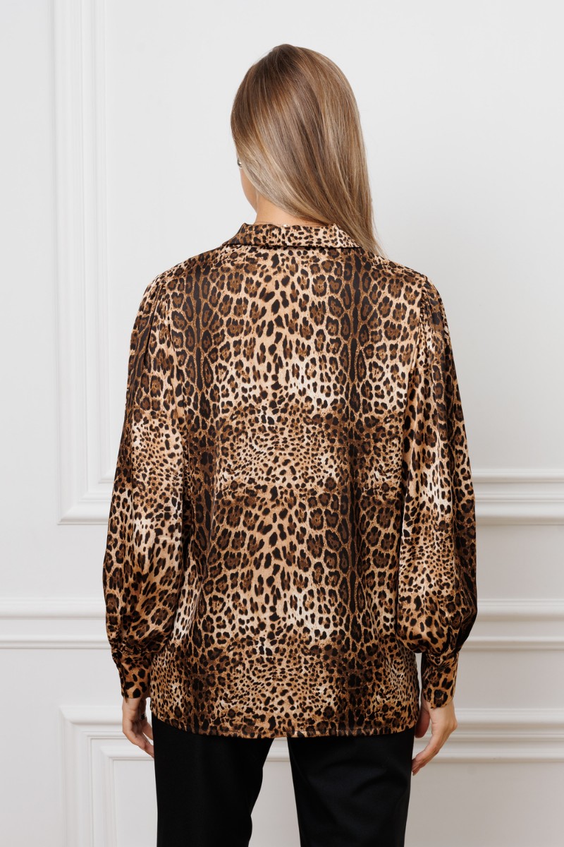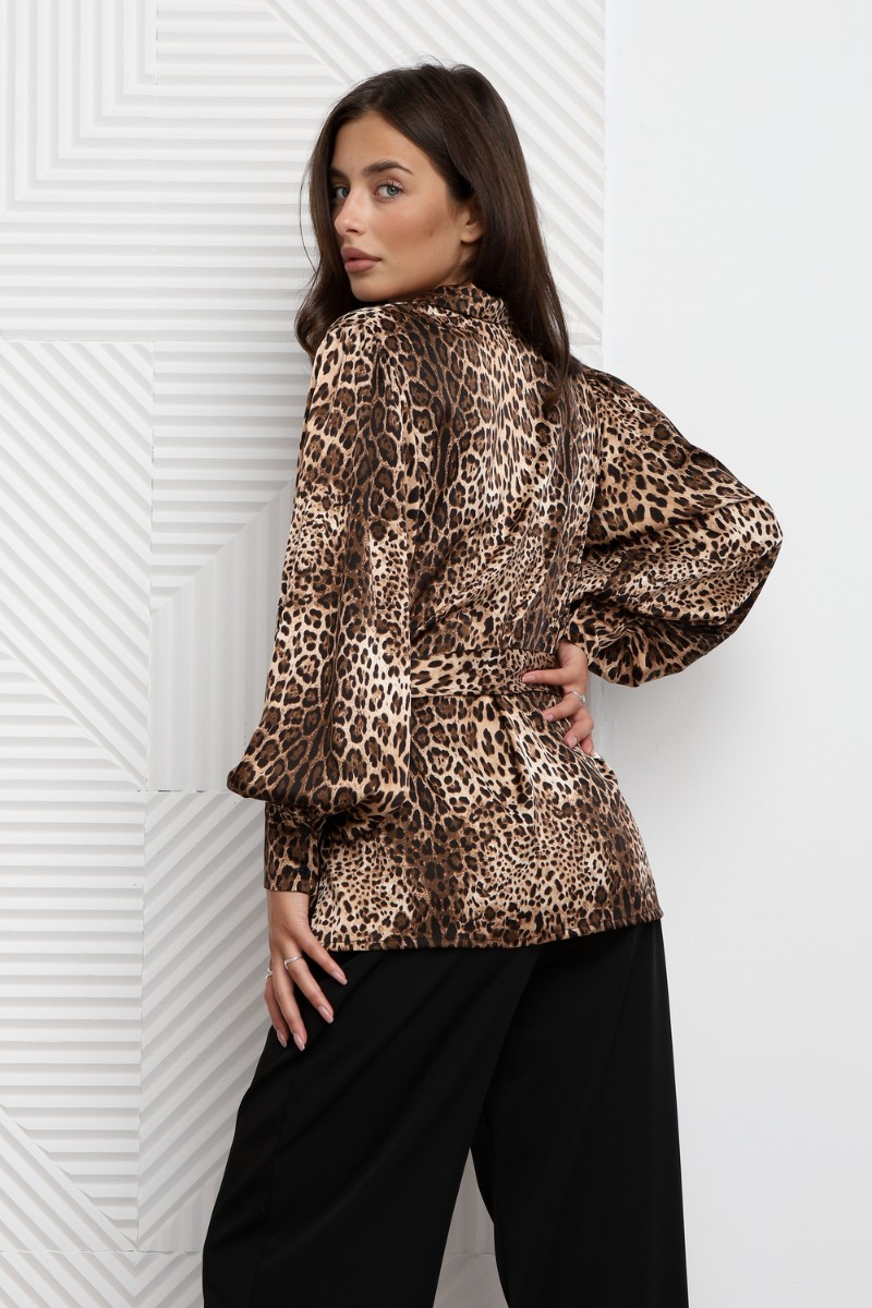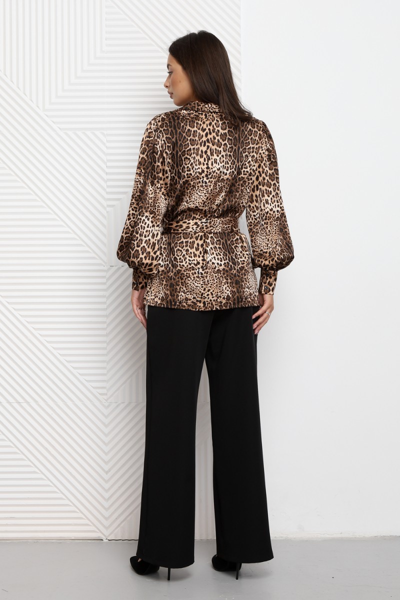 Представляем Вашему вниманию блузку с поясом от российского производителя бренда женской одежды! Блуза прямого силуэта с V-образным вырезом, застегивается на пуговицы. Данная модель свободного кроя имеет леопардовый принт, в боковых швах имеются разрезы, пояс съемный. Рукав полной длины внизу имеет две складки, разрез и манжету, которая застегивается на две пуговицы. Необычное дизайнерское решение позволило совместить элегантную классику и эффектный стиль. Леопардовая рубашка женская станет отличным дополнением к любому гардеробу. Шелковая модель имеет в комплекте пояс, что подчеркивает талию и создает элегантный силуэт. Стильная блузка с поясом станет отличным выбором для женщин, стремящихся выглядеть нарядно и модно. Изготовленная из легкой атласной ткани, она обладает свободным кроем оверсайз, что обеспечивает комфорт в носке. Черный и белый цвета отлично подойдут как для праздничного мероприятия, так и для офисных встреч. Эта рубашка дополнена рукавами-фонариками, что придает образу романтичности и элегантности. Пояс позволяют регулировать силуэт, создавая акцент на талии. Также присутствует стильный леопардовый принт, который добавляет нотку дерзости в наряд.