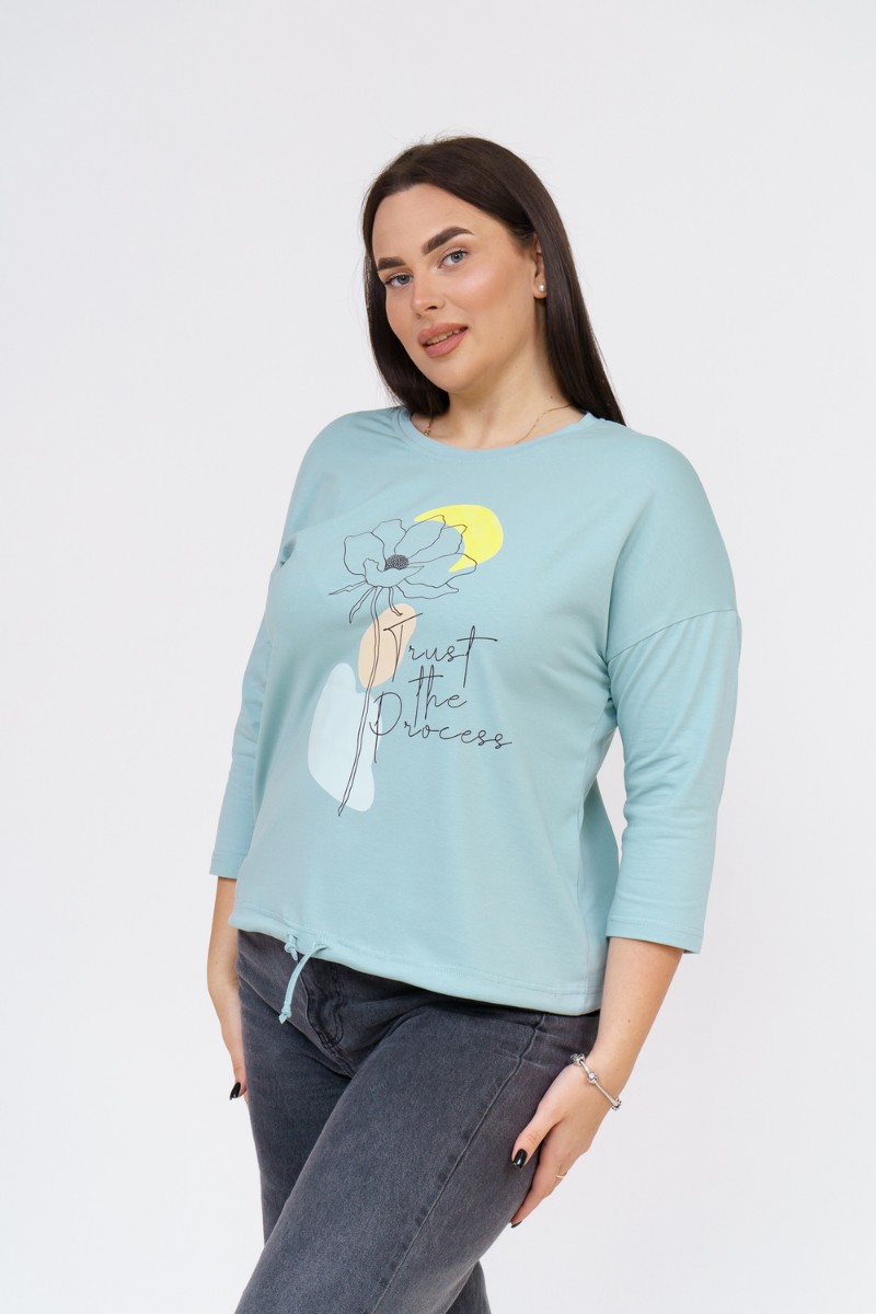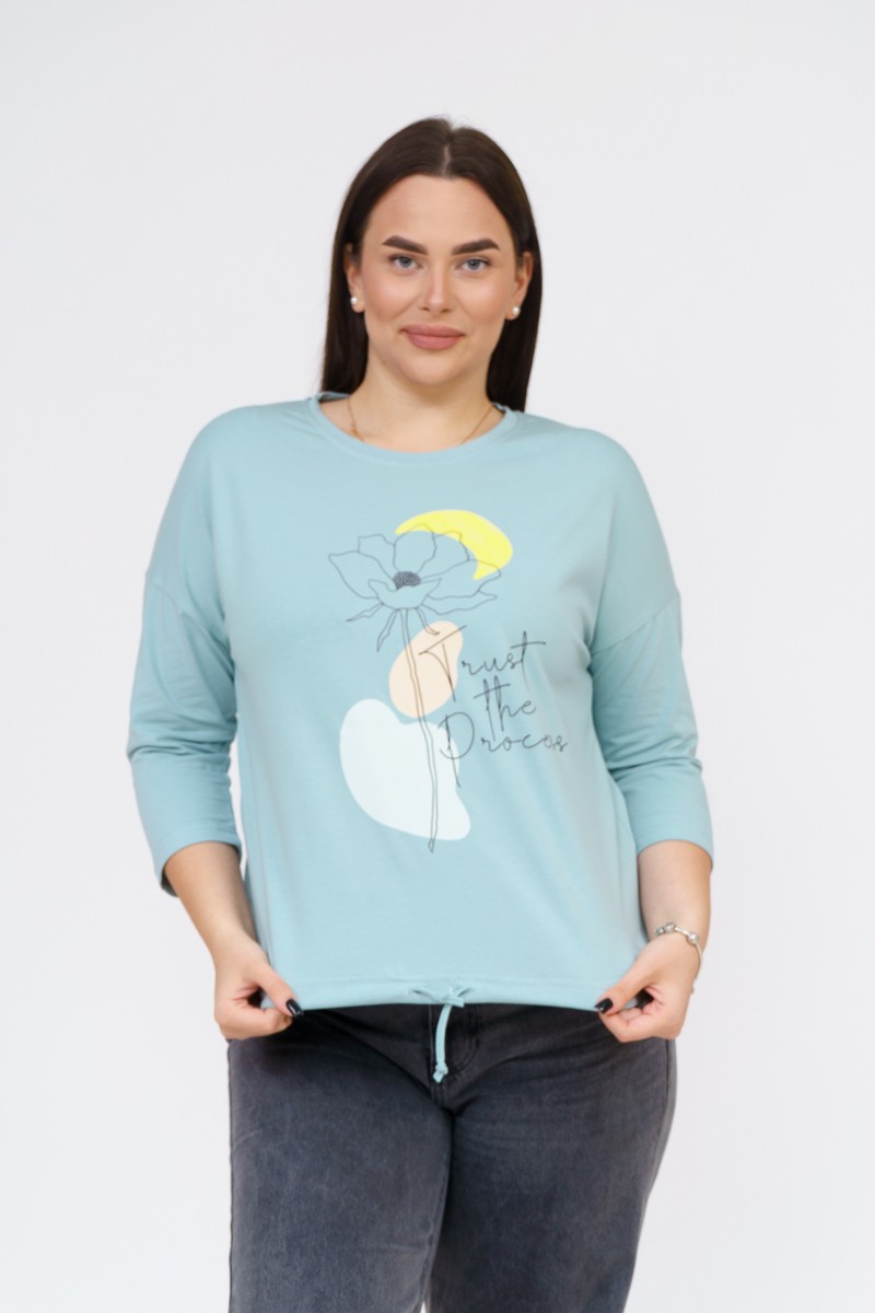 Лонгслив женский "Николь" кулирка с лайкрой (р-ры: 44-62) аква