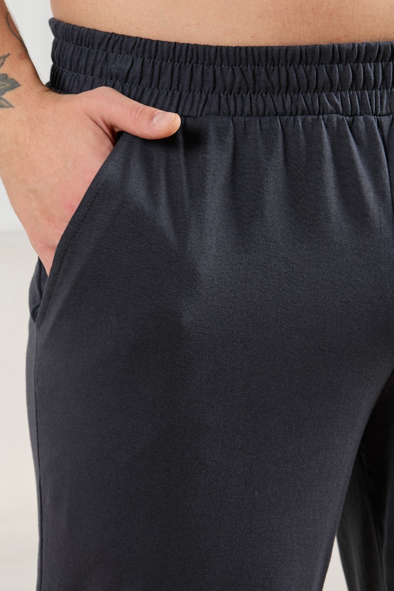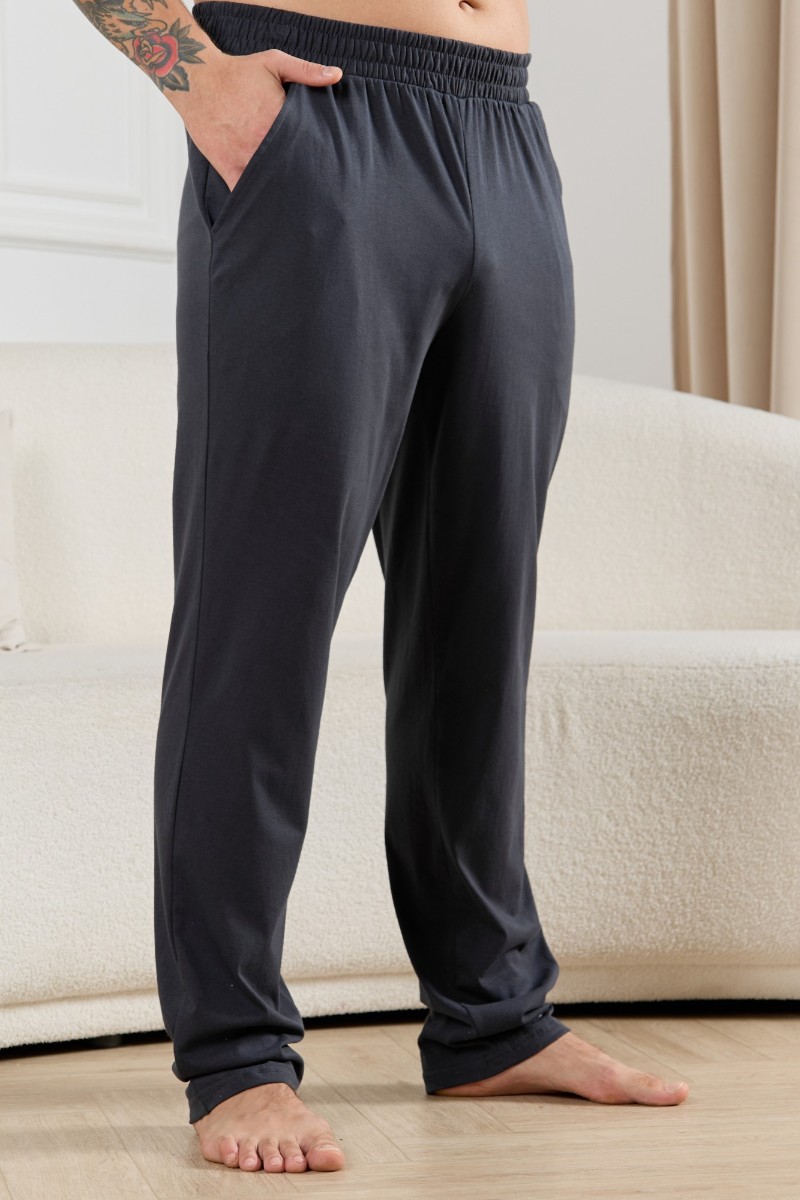 Представляем Вашему вниманию брюки мужские из гладкокрашеного трикотажного полотна "кулирная гладь", свободного покроя, на притачном поясе с эластичной тесьмой внутри, с карманами в боковых швах. Нижние срезы обработаны подгибкой.