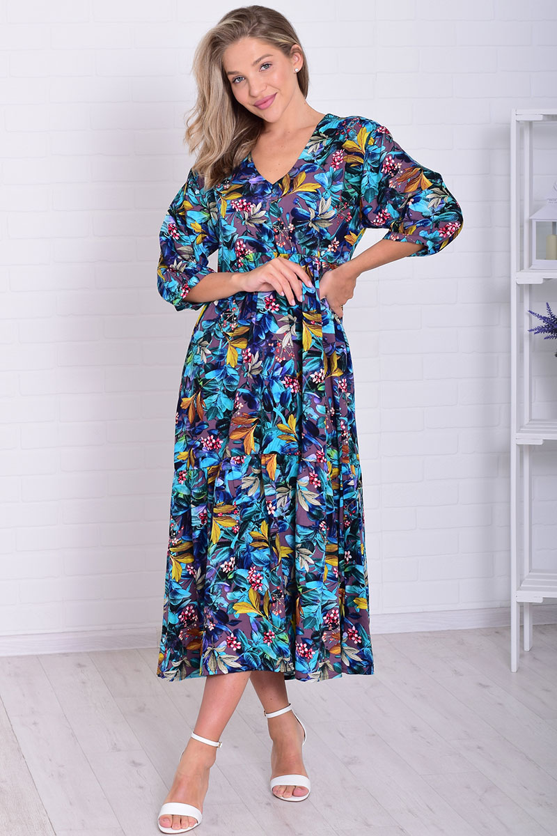 Платье женское Ф1074а штапель (последний размер) изумруд 54