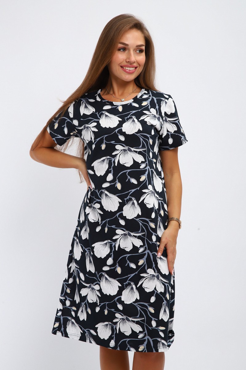 Представляем Вашему вниманию легкое женское платье, сшитое из натуральной, приятной телу кулирки - 100% хлопок, позволяющий коже дышать. Расцветка изделия красиво смотрится и поднимает настроение. В нём Вы будете чувствовать себя комфортно и уверенно.