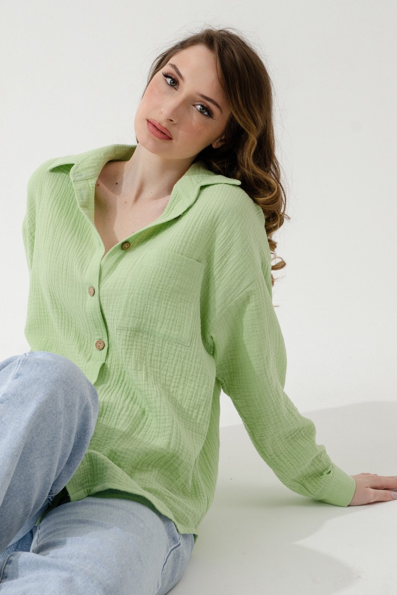 Рубашка женская "Муслин" 2315-Мус муслин (последний размер) зеленый 50
