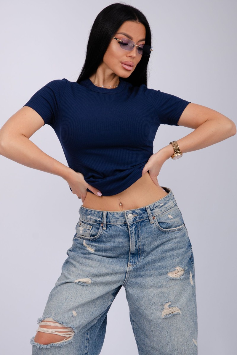 Футболка женская "Скимс 3" лапша (последний размер) темно-синий 48