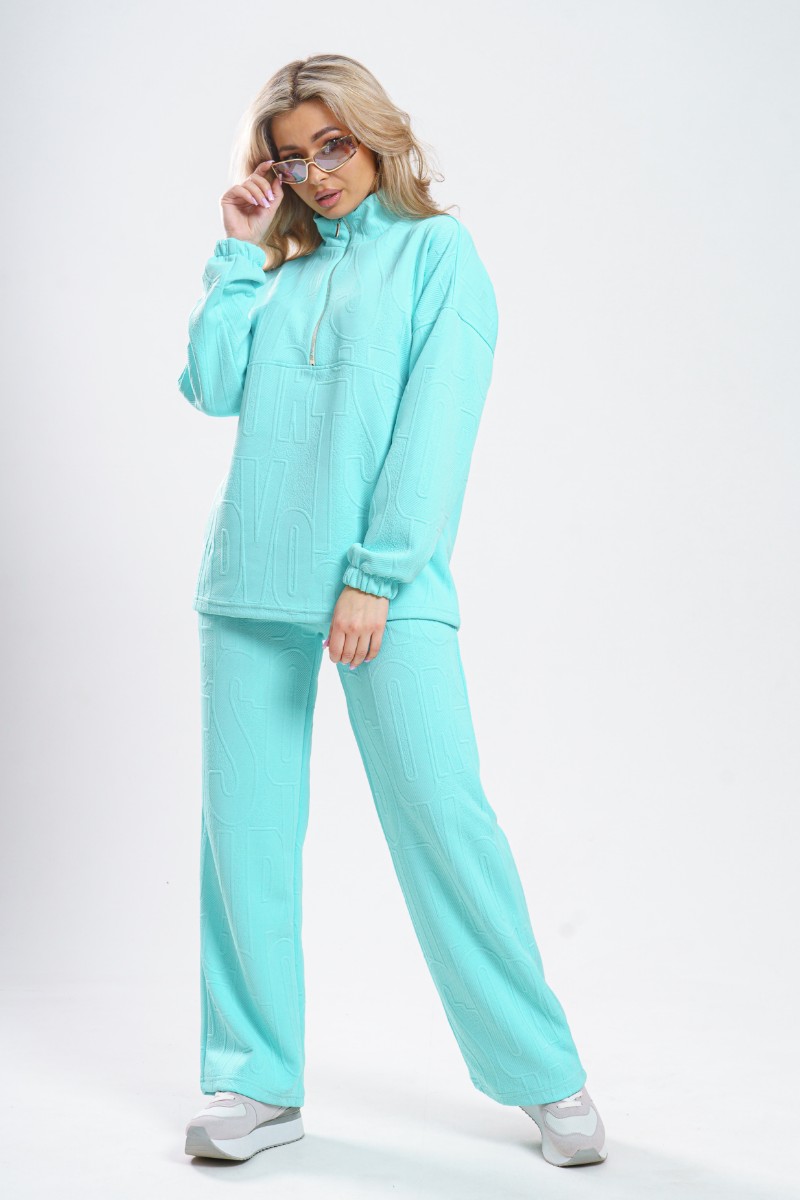 Костюм двойка женский 977 трикотаж 3Д (последний размер) бирюза 50,56
