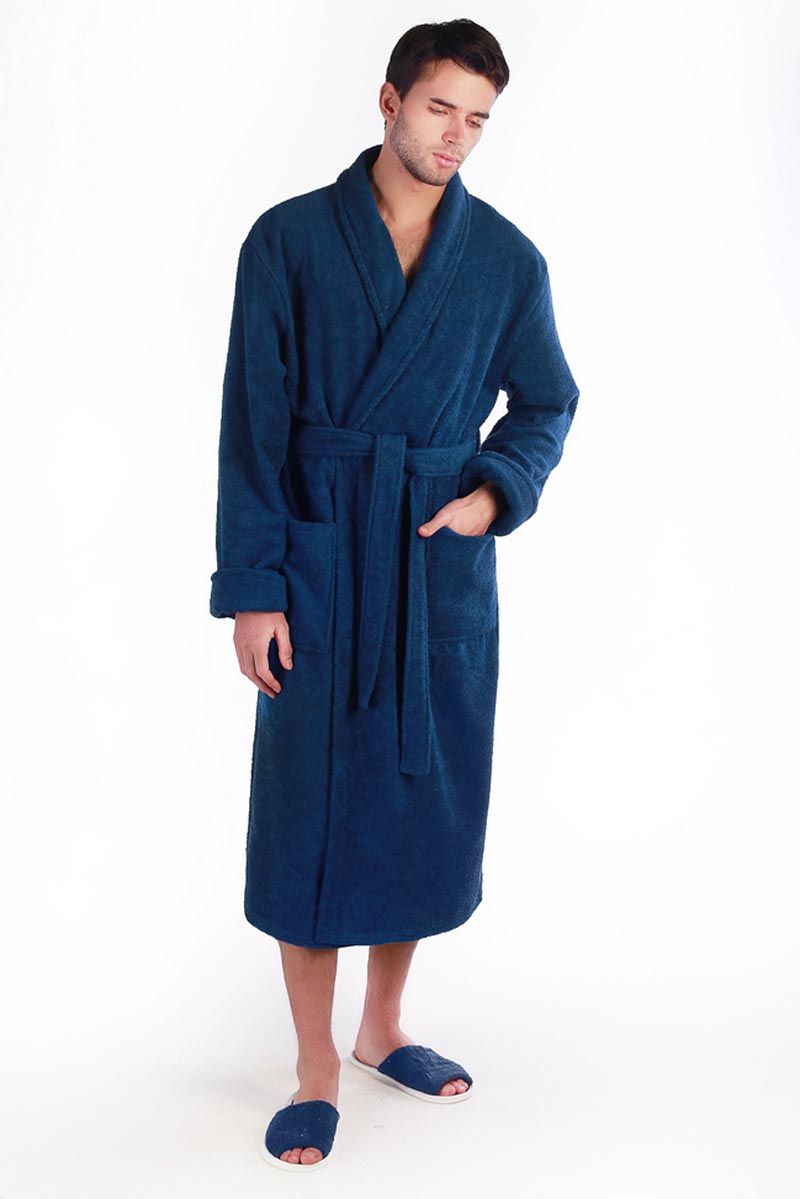 Халат мужской шаль махровый "Мужская элегия" (последний размер) темно-синий 56