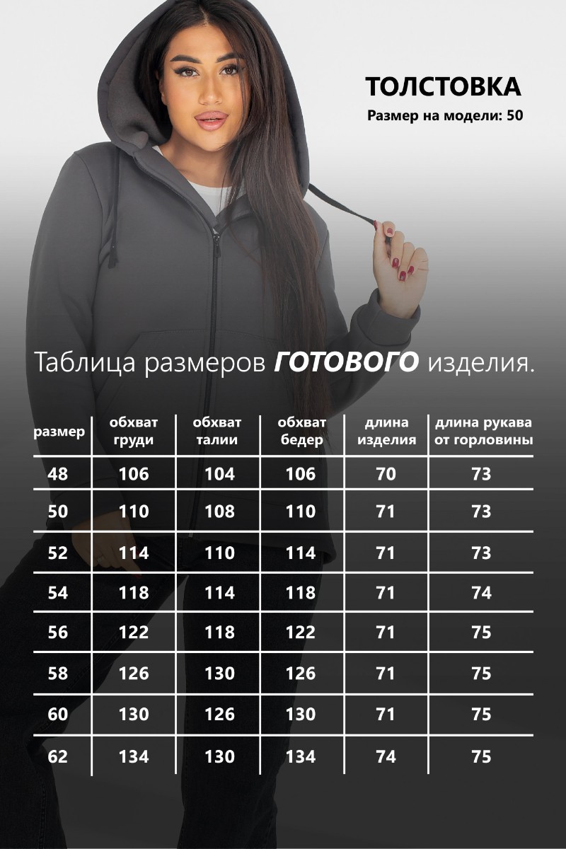 Представляем Вашему вниманию стильную и практичную женскую толстовку, сшитую из хлопкового трикотажа с начесом. Толстовка на молнии. Ткань нежная, очень мягкая и теплая. Модель дополнена уютным начесом. Толстовка отлично подойдет для занятий спортом на свежем воздухе, в ней будет тепло и удобно как дома, так и на прогулке. Представленная модель - незаменимая вещь в холодный осенне-зимний период.