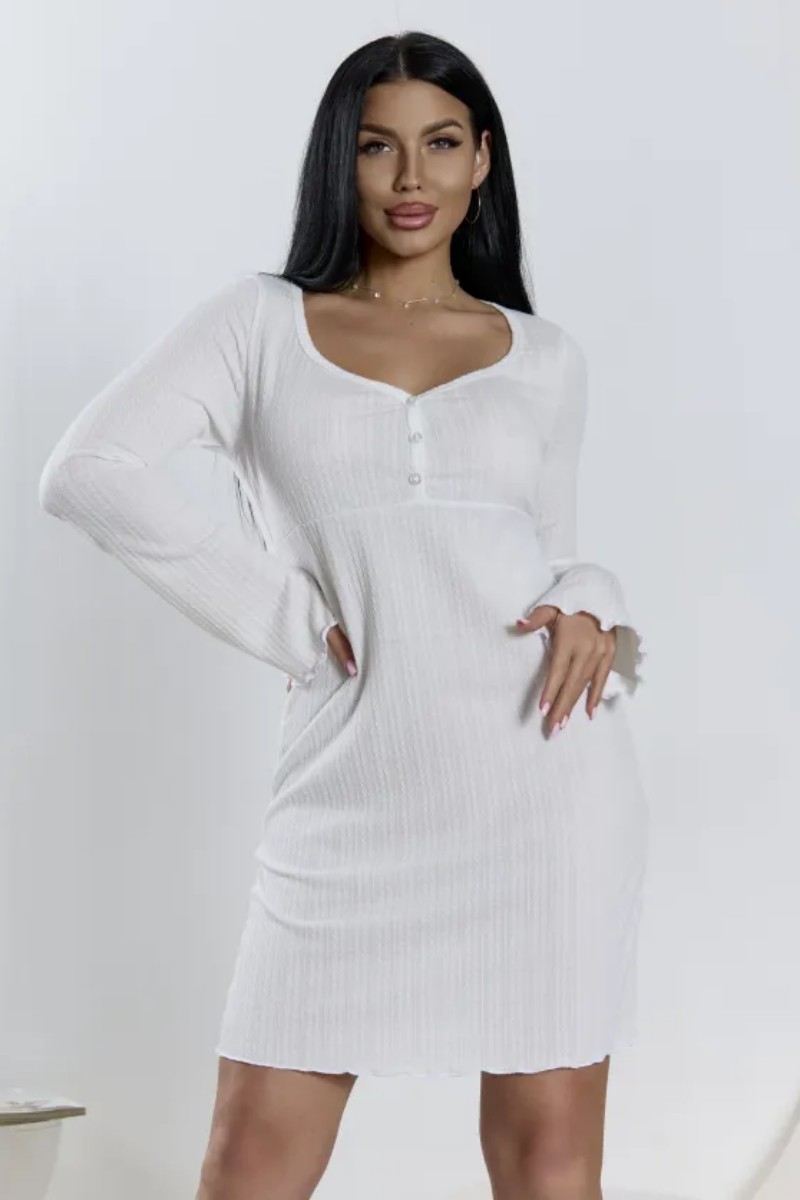 Представляем Вашему вниманию женское домашнее платье. Это стильная и комфортная модель, которая станет незаменимым элементом вашего гардероба. Платье выполнено из 100% хлопка, что обеспечивает максимальный комфорт и воздухопроницаемость. Материал кашкорсе обладает рельефной фактурой "лапша", что придает изделию оригинальный и стильный вид. Особенностью модели является прилегающий силуэт, который подчеркивает фигуру и создает элегантный образ.