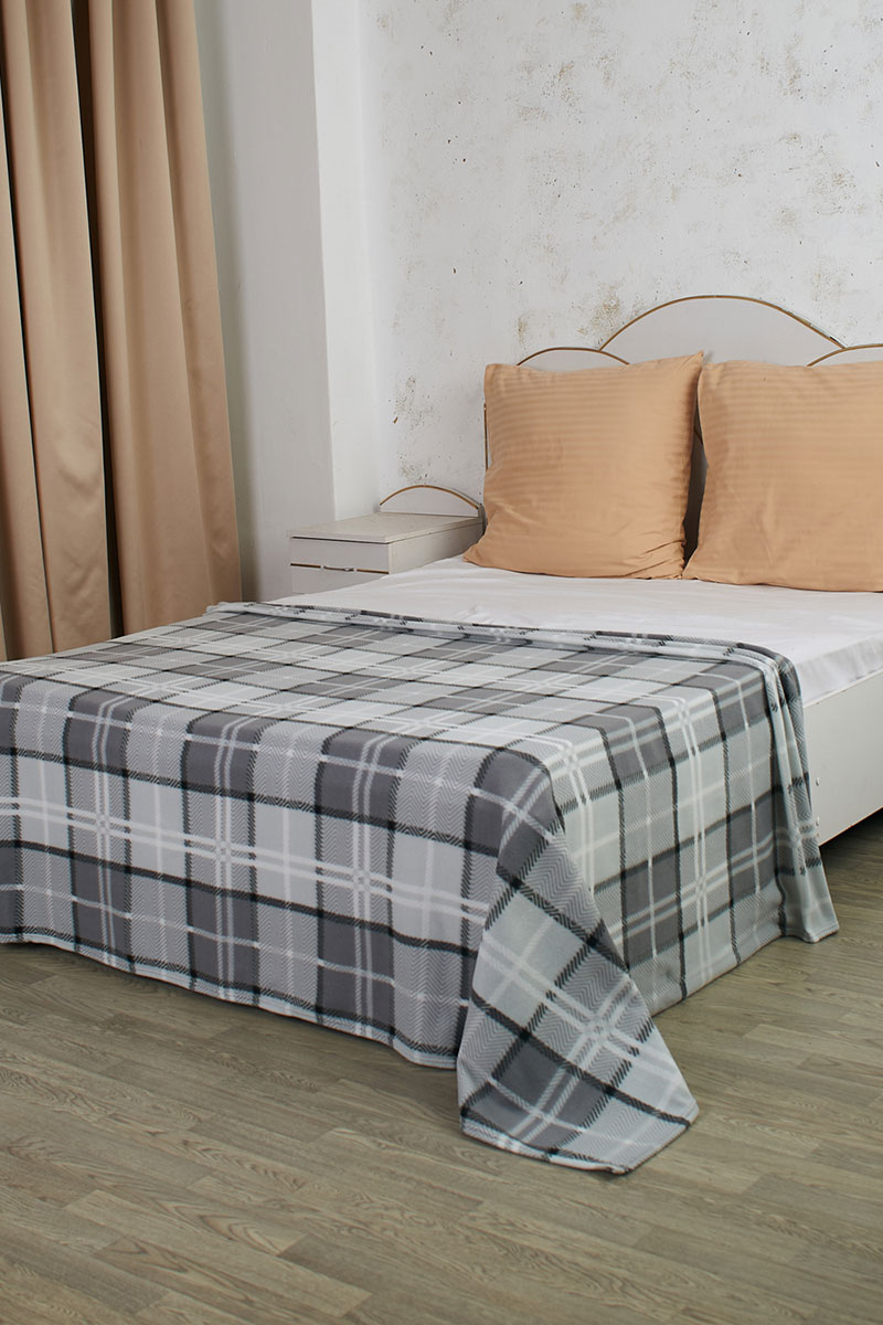 Плед флисовый "Клетка" 059465 серый