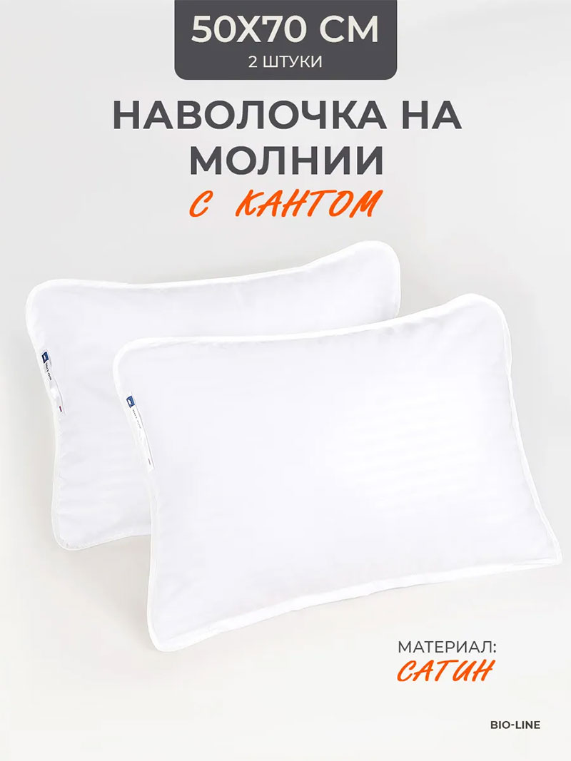 Наволочка на молнии сатин "Bio-Line" 059378 белый 2 шт.