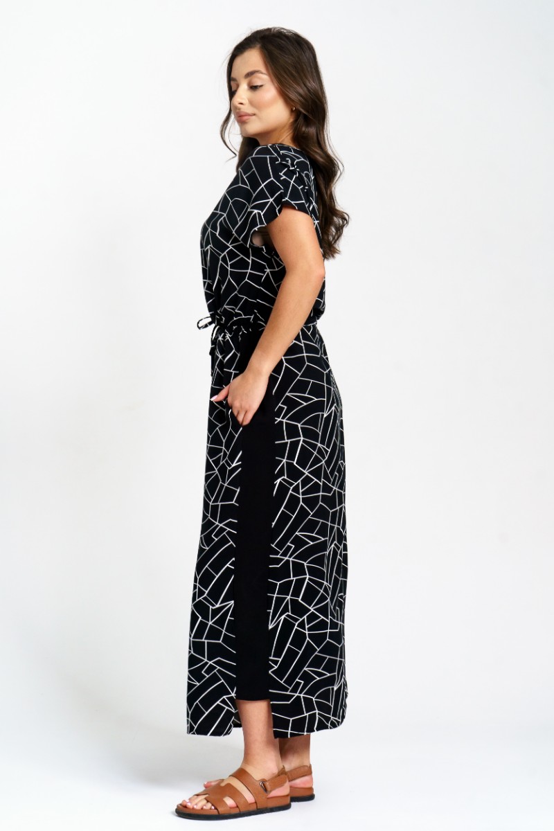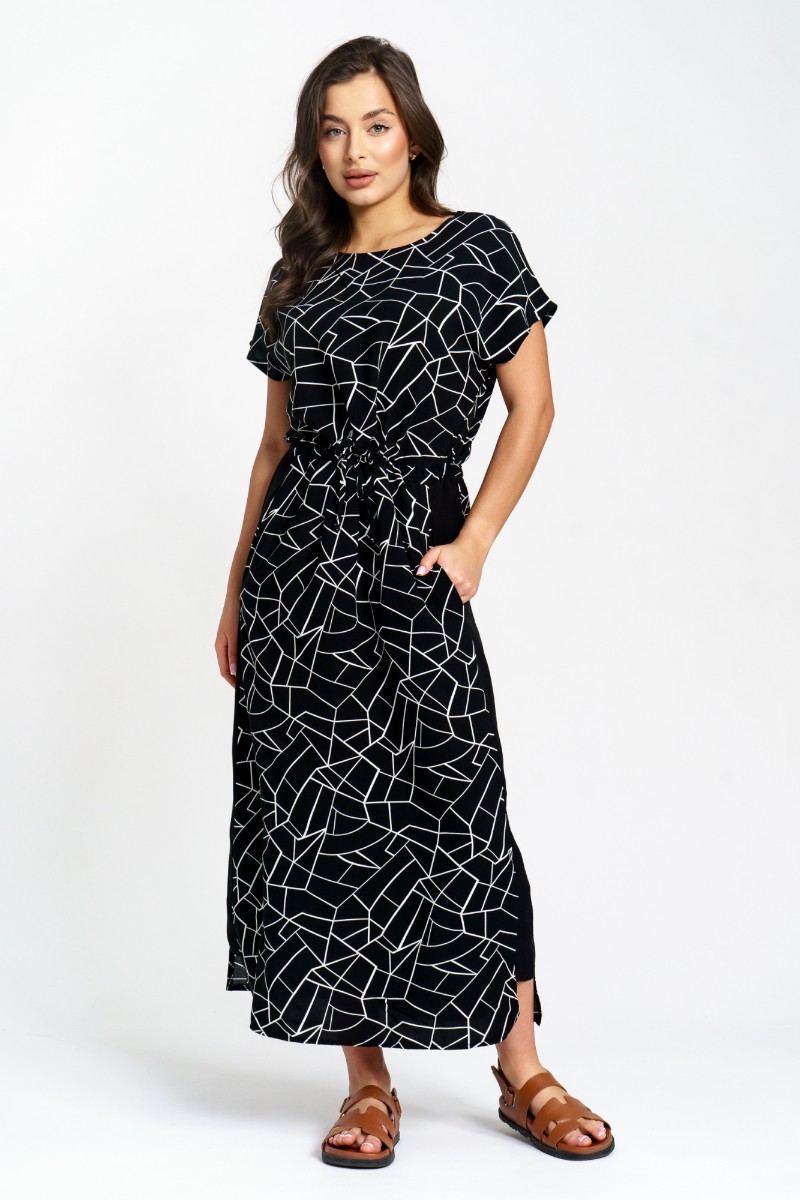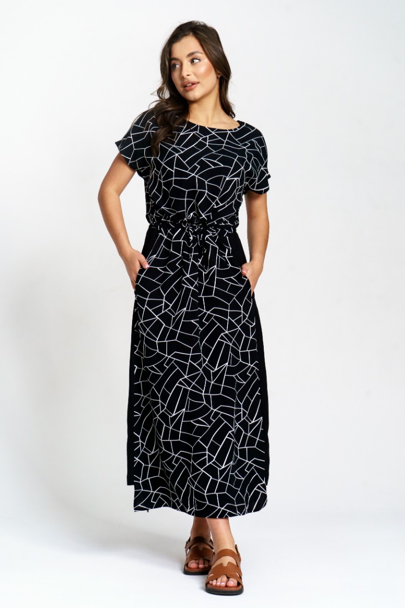 Представляем Вашему вниманию удобное и стильное платье длины макси, выполненное из приятного к телу штапеля (100% вискоза), которое станет отличным вариантом для летнего гардероба. Легкая дышащая ткань обеспечивает комфорт даже в жаркую погоду. Внутренний шнурок на талии позволяет регулировать посадку и подчеркивает женственный силуэт. Платье украшено однотонными декоративными вставками по бокам, что зрительно стройнит и добавляет изюминку образу. Практичные боковые карманы делают модель ещё более функциональной и удобной для повседневной носки.