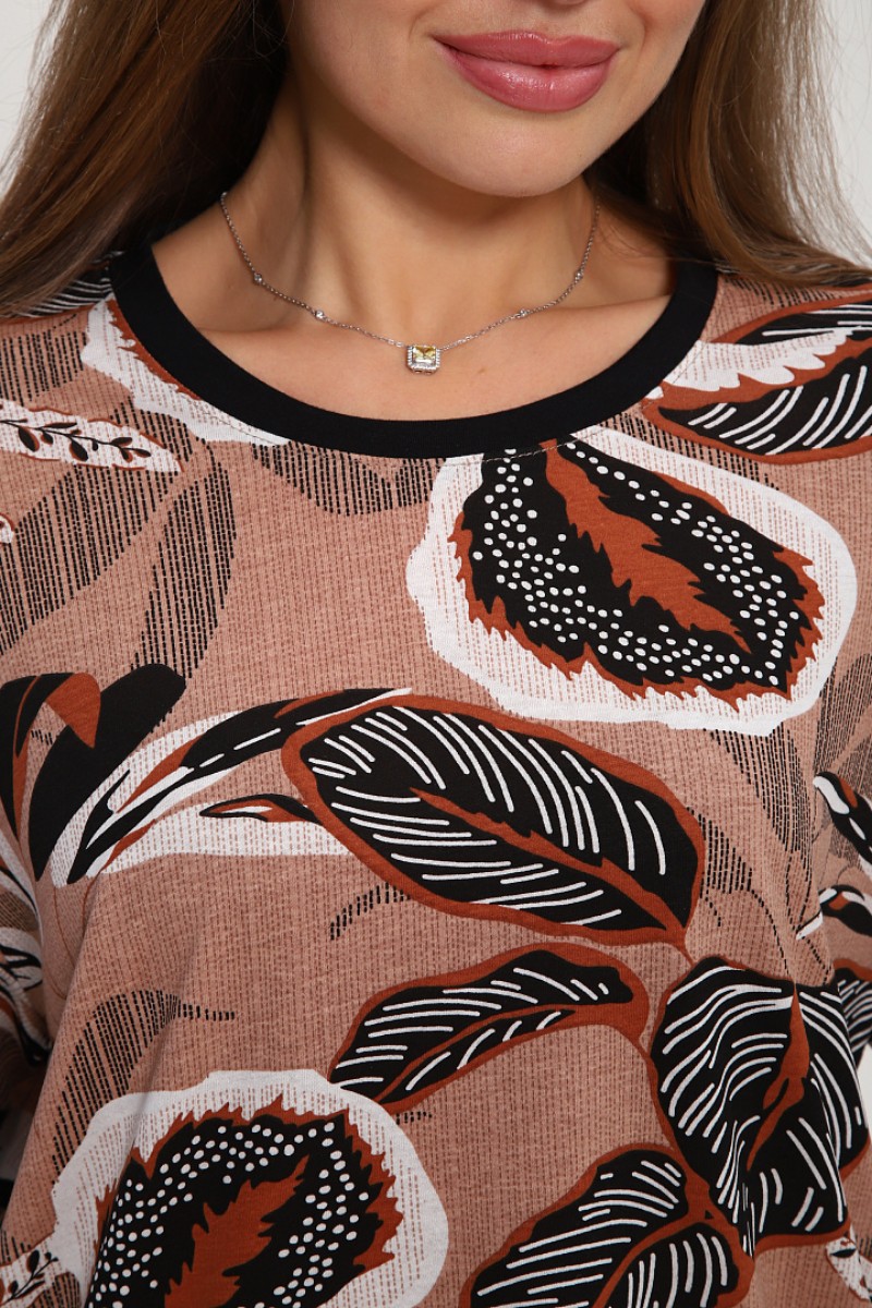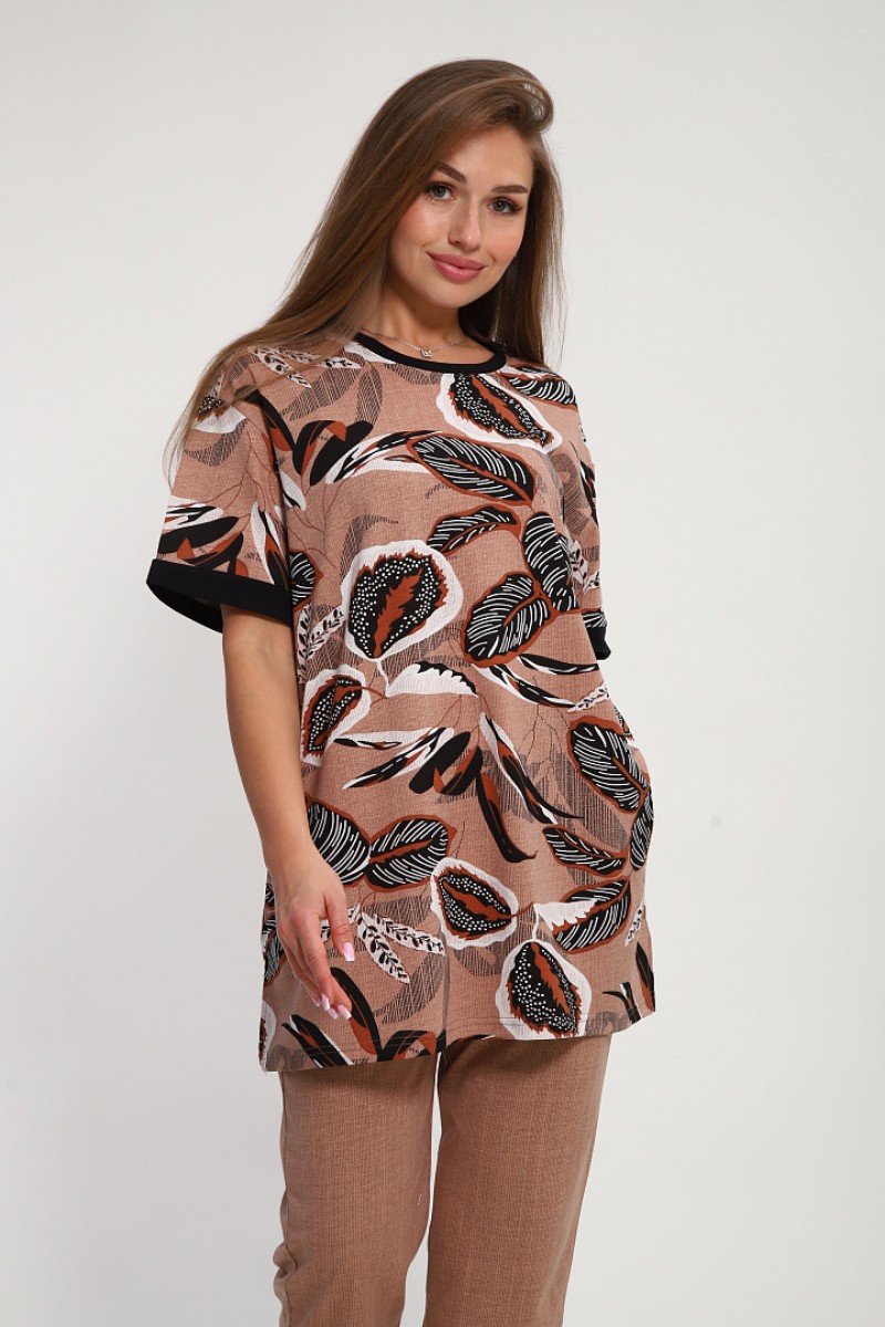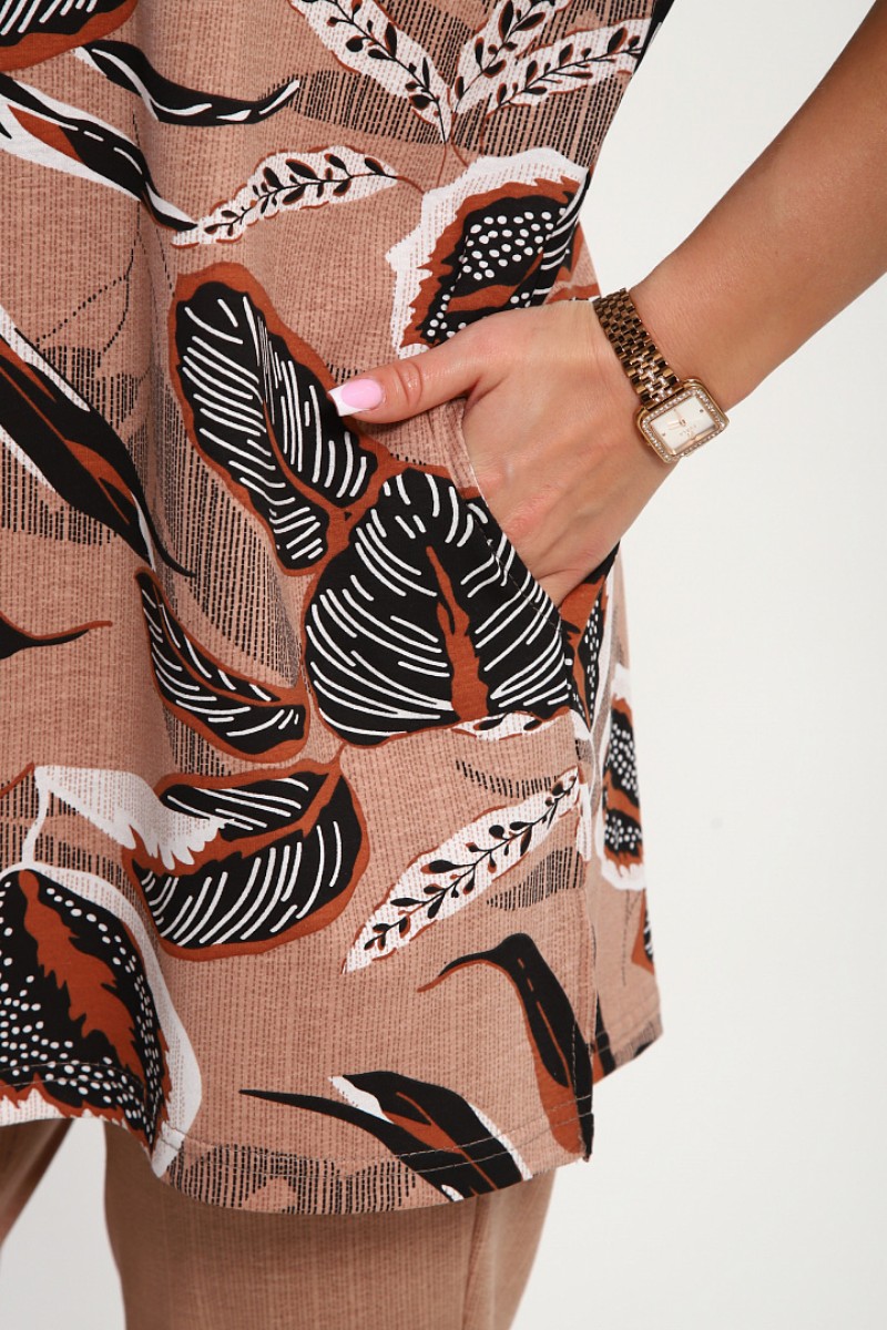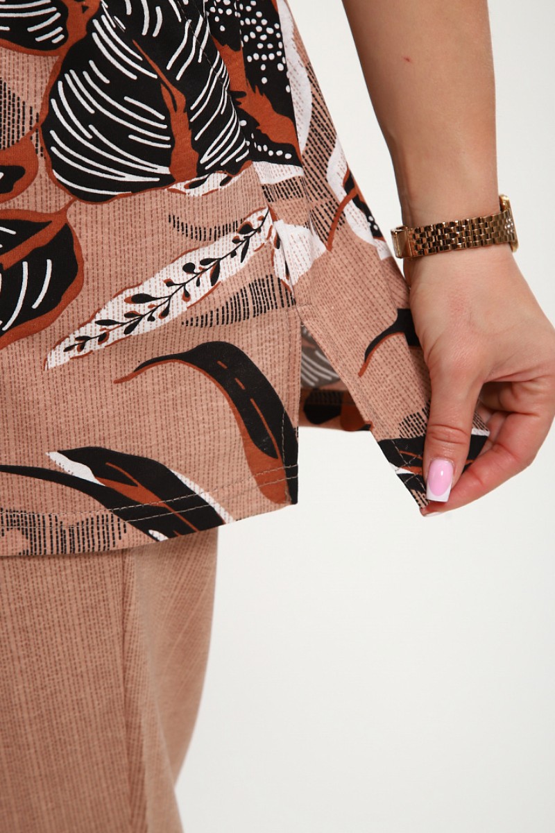 Костюм двойка женский №269 кулирка (р-ры: 50-60) бежевый-коричневый