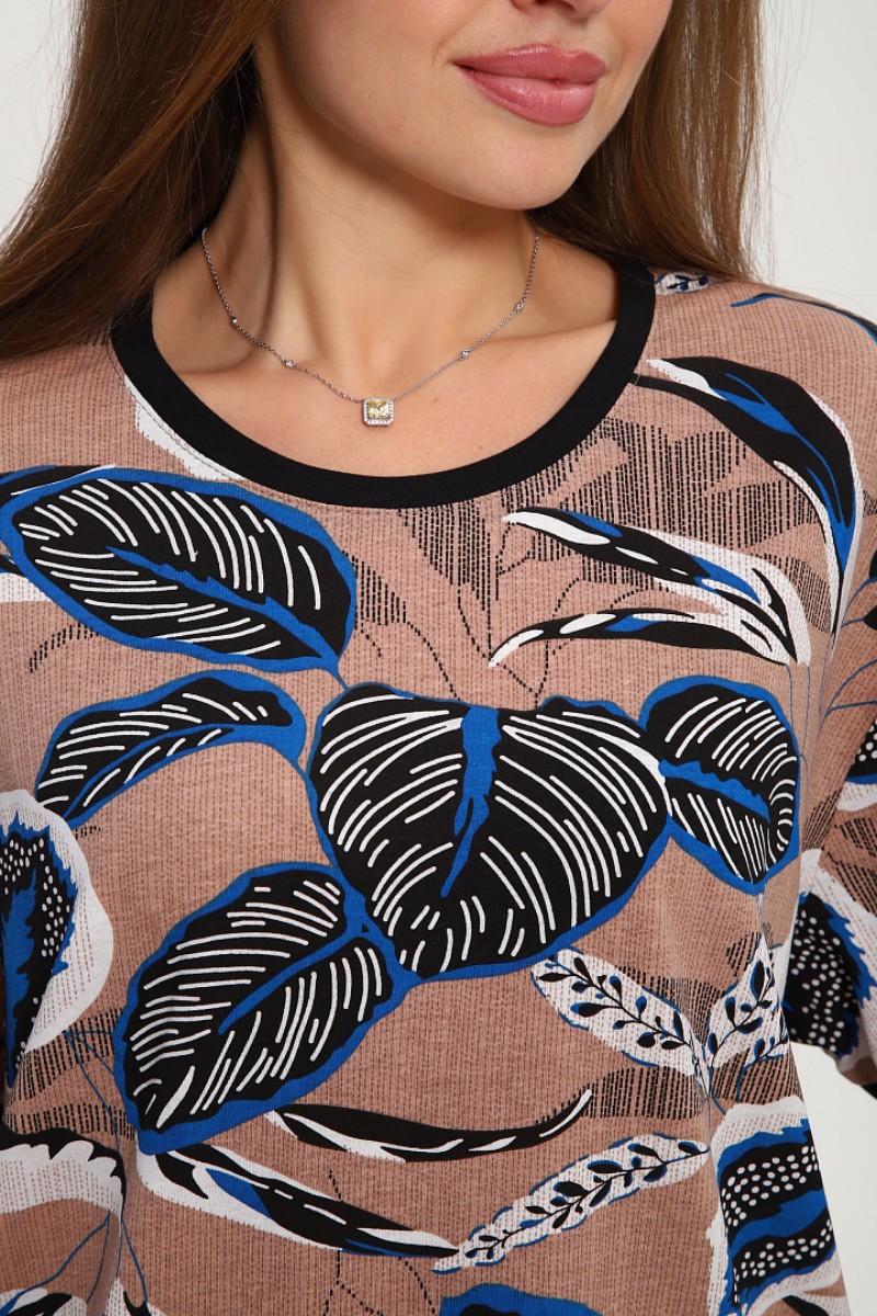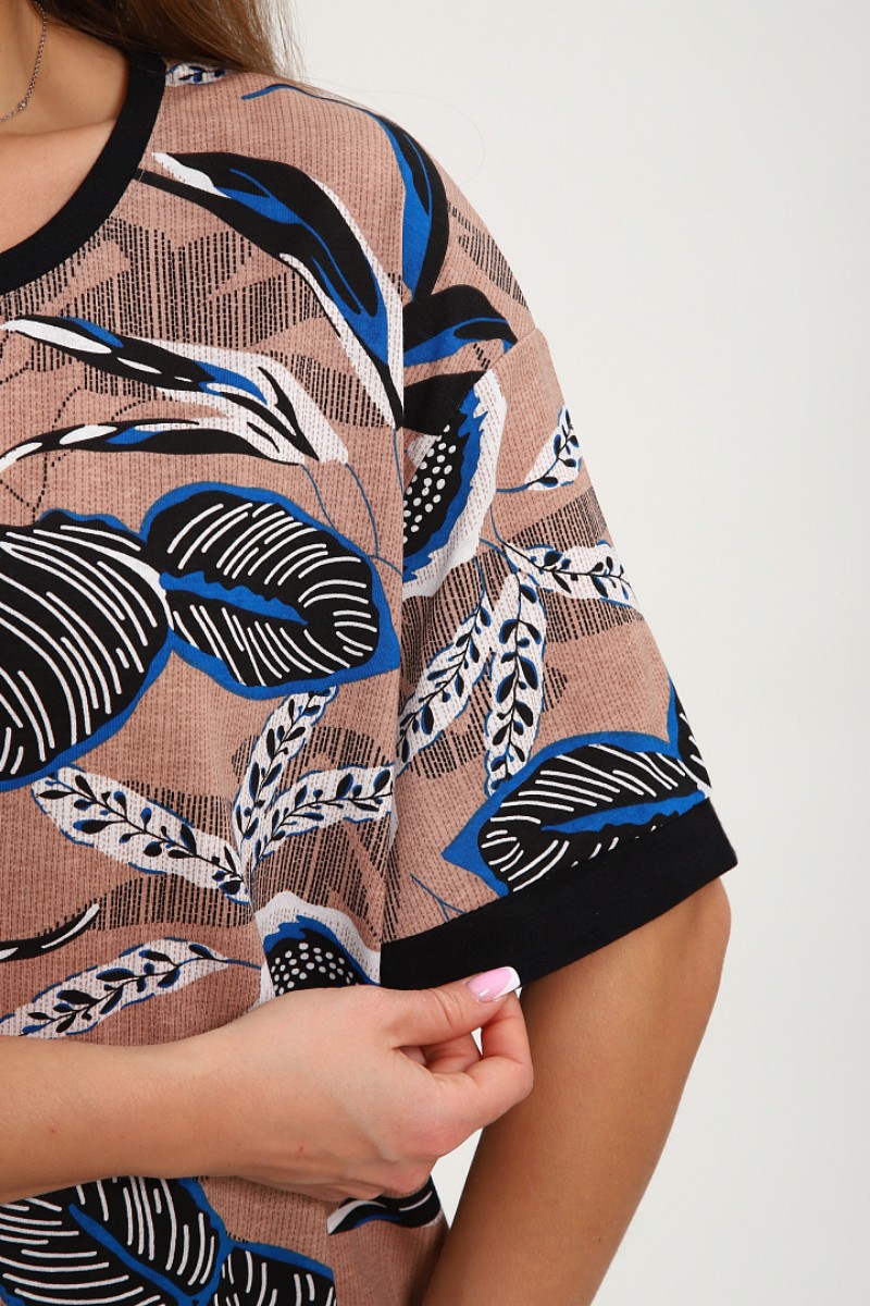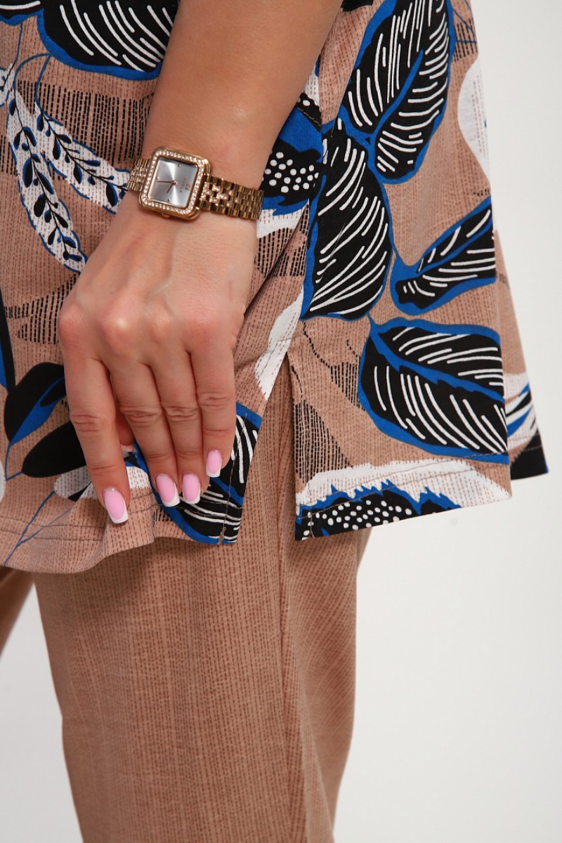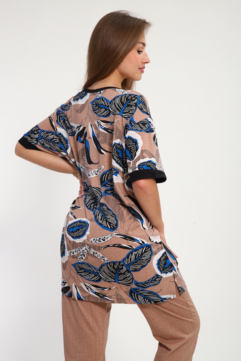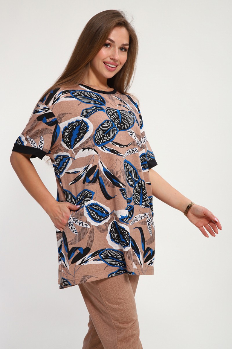 Костюм двойка женский №269.1 кулирка (р-ры: 50-60) бежевый-синий