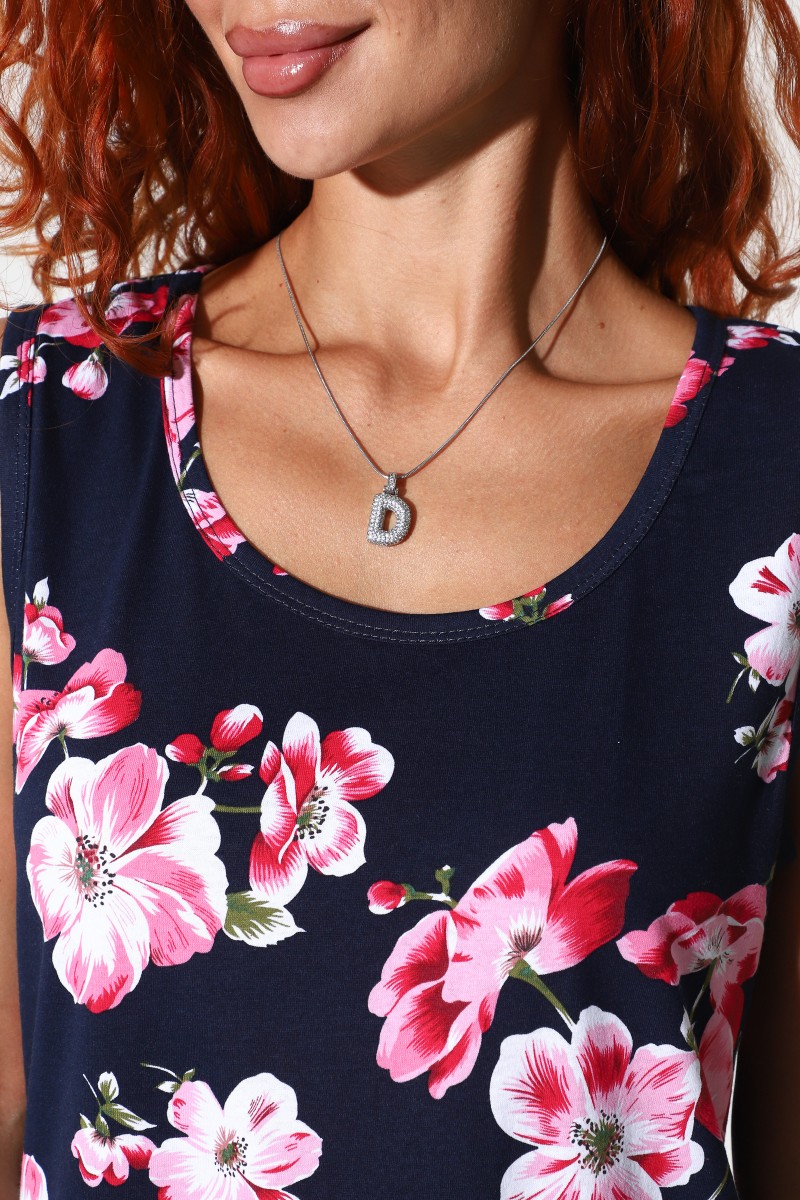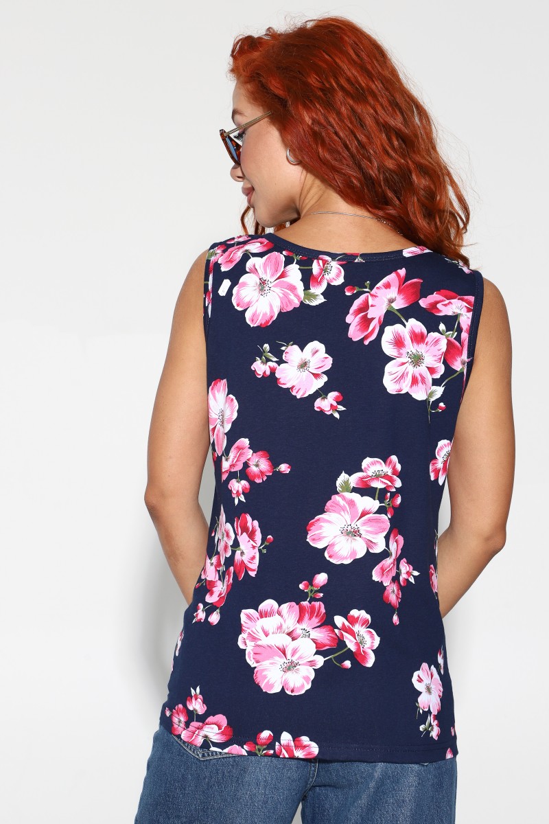 Майка женская №2143/7 кулирка (р-ры: 48-62) синий-розовые цветы