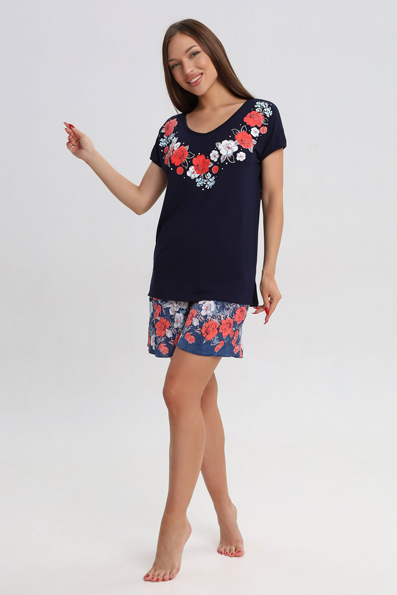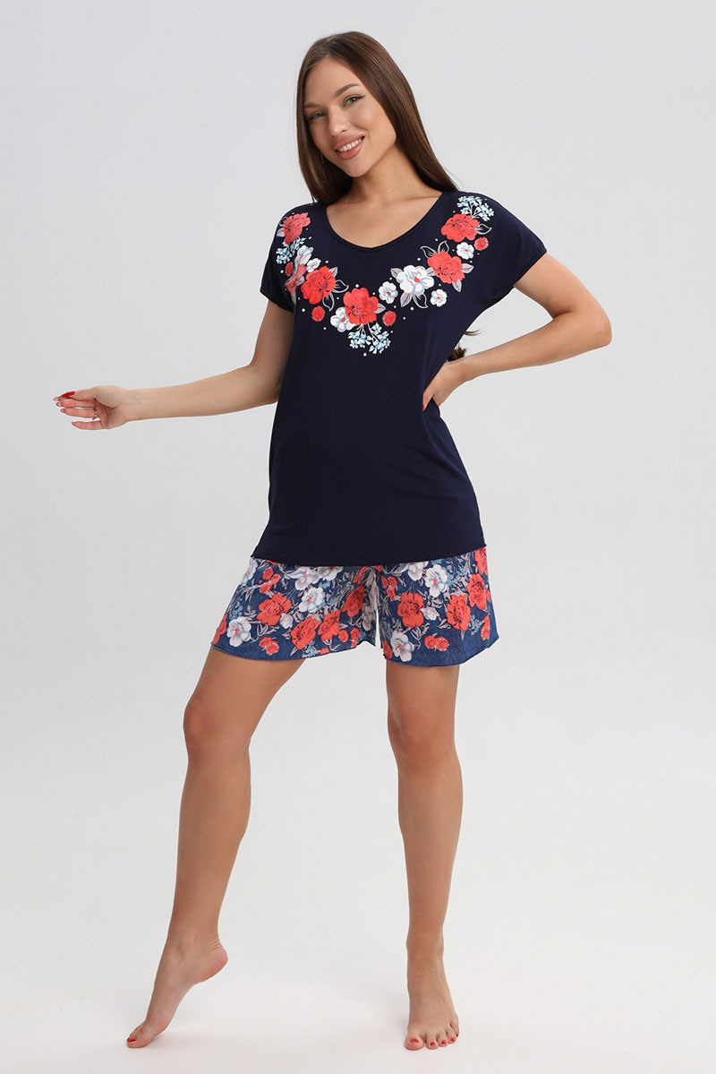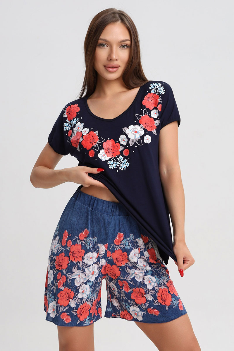 Представляем Вашему вниманию эффектный женский костюм, изготовленный из приятного к телу и практичного материала. Костюм состоит из блузки и юбки-шорт. Ткань украшена принтом. Костюм подойдет и для дома, и для прогулок, и для занятий спортом. Костюм хорошо сидит на фигуре и позволит Вам чувствовать себя уверенно и комфортно и любой ситуации.
