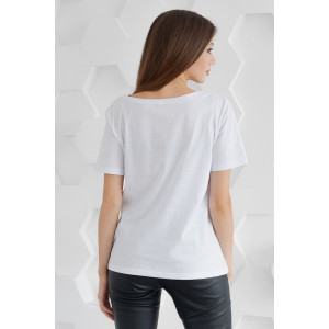 Представляем Вашему вниманию стильную женскую футболку с оригинальной набивкой, которая будет отличным дополнением Вашего повседневного летнего образа. Модель изготовлена из высококачественного, натурального материала, который хорошо пропускает воздух, позволяя коже дышать.