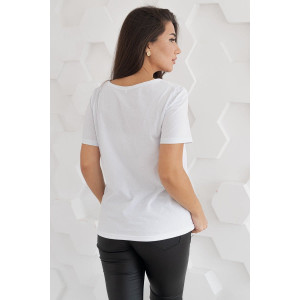 Представляем Вашему вниманию стильную женскую футболку с оригинальной набивкой, которая будет отличным дополнением Вашего повседневного летнего образа. Модель изготовлена из высококачественного, натурального материала, который хорошо пропускает воздух, позволяя коже дышать.