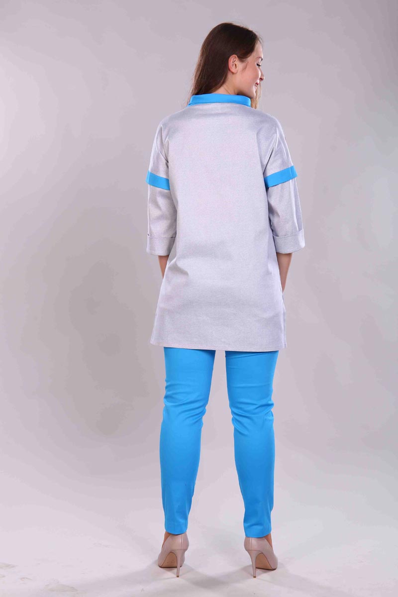 Жакет медицинский женский М-263 хлопок-стрейч (последний размер) серый меланж-василек 52