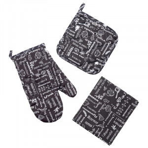 Набор кухонный "Правила кухни" 3 предмета рогожка "Горький шоколад"