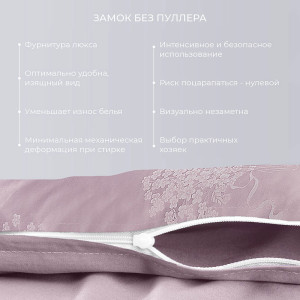 Особенности: пододеяльник с молнией, наволочки с ушками. На верхней части пододеяльника и наволочек 70х70 блестящий узор выполнен шелковой нитью из вискозы.