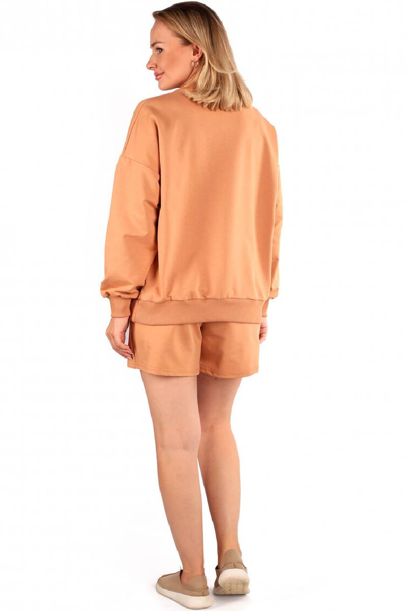 Представляем Вашему вниманию стильный женский спортивный костюм, который идеально подойдет как для прохладных прогулок на улице, так и для походов в кино и торговые центры. Комплект состоит из худи и шорт. Худи прямого силуэта, со спущенной линией плеча, без кармана, с округлой горловиной. Рукав спущенный, втачной, длинный. Низ худи, рукава и горловина обработаны притачной планкой из кашкорсе. Шорты свободные, резинка на поясе, карманы в боковых швах.