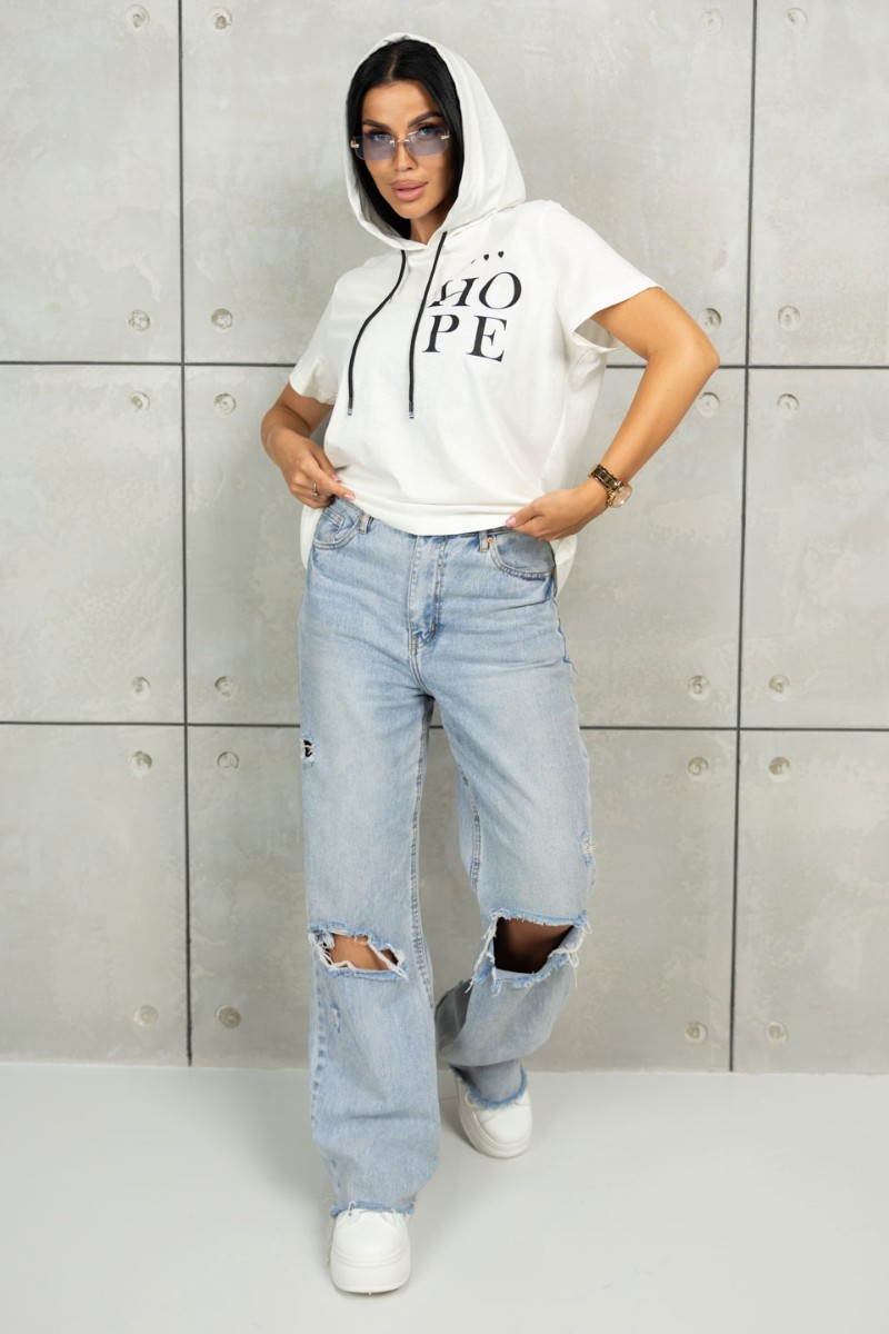 Очень хорошая футболка. Довольна и качеством, и пошивом, и дизайном. 100 % хлопок - здорово! Капюшон - великолепно! В талии свободно, - то, что надо! И слово, написанное на груди -... [читать далее] "надежда", наполняет позитивом. Спасибо!»