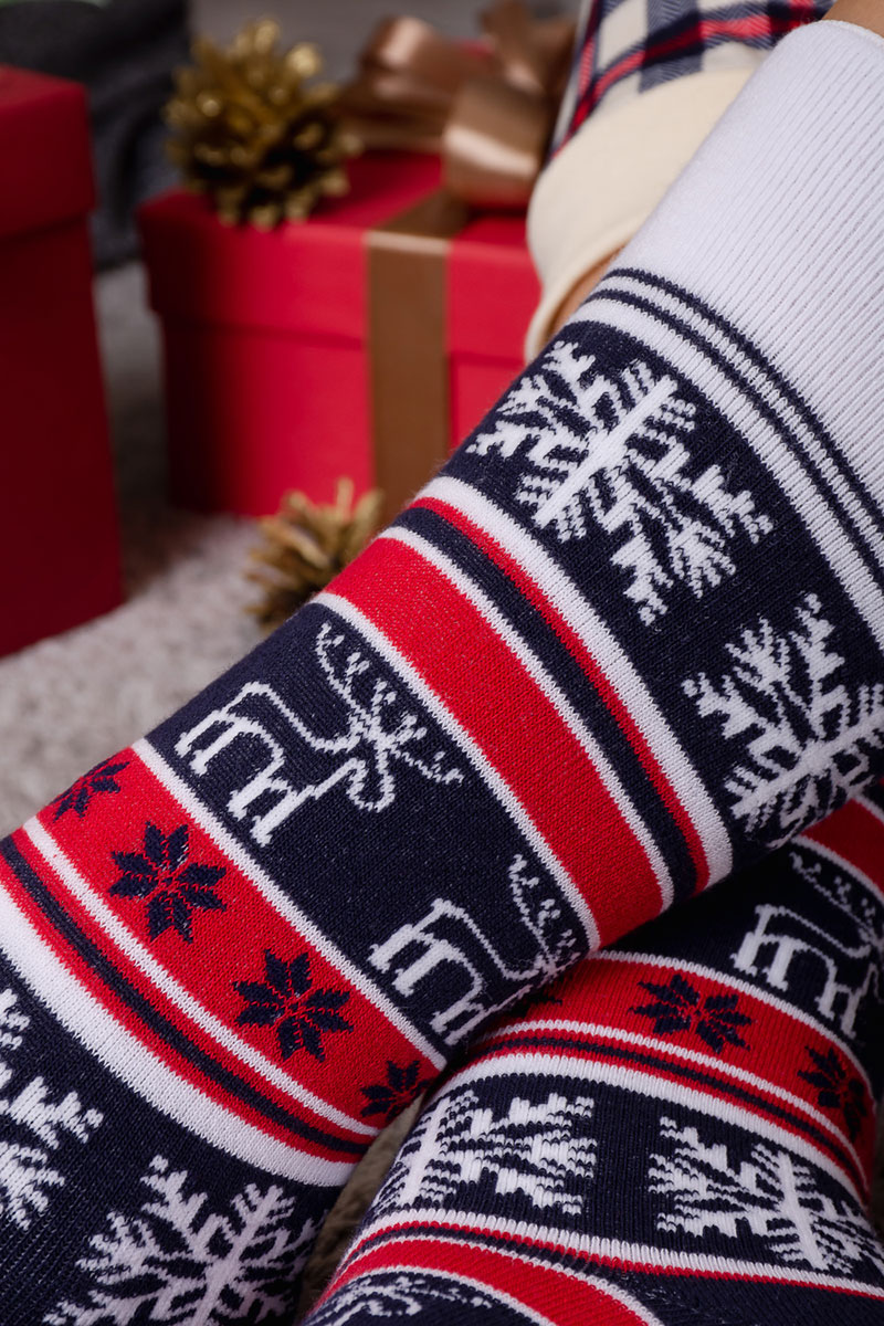 Представляем Вашему вниманию уютные женские носочки-гольфы в новогодней расцветке. Полностью плюшевые внутри. Длина до середины икры. В упаковке 2 пары - по 1 паре каждой расцветки (красный и темно-синий). Упаковка - прозрачный пакет.