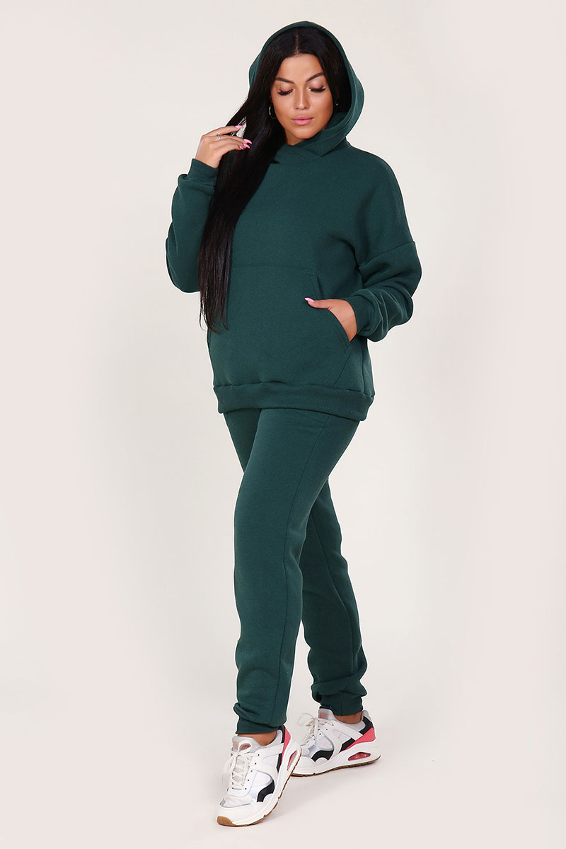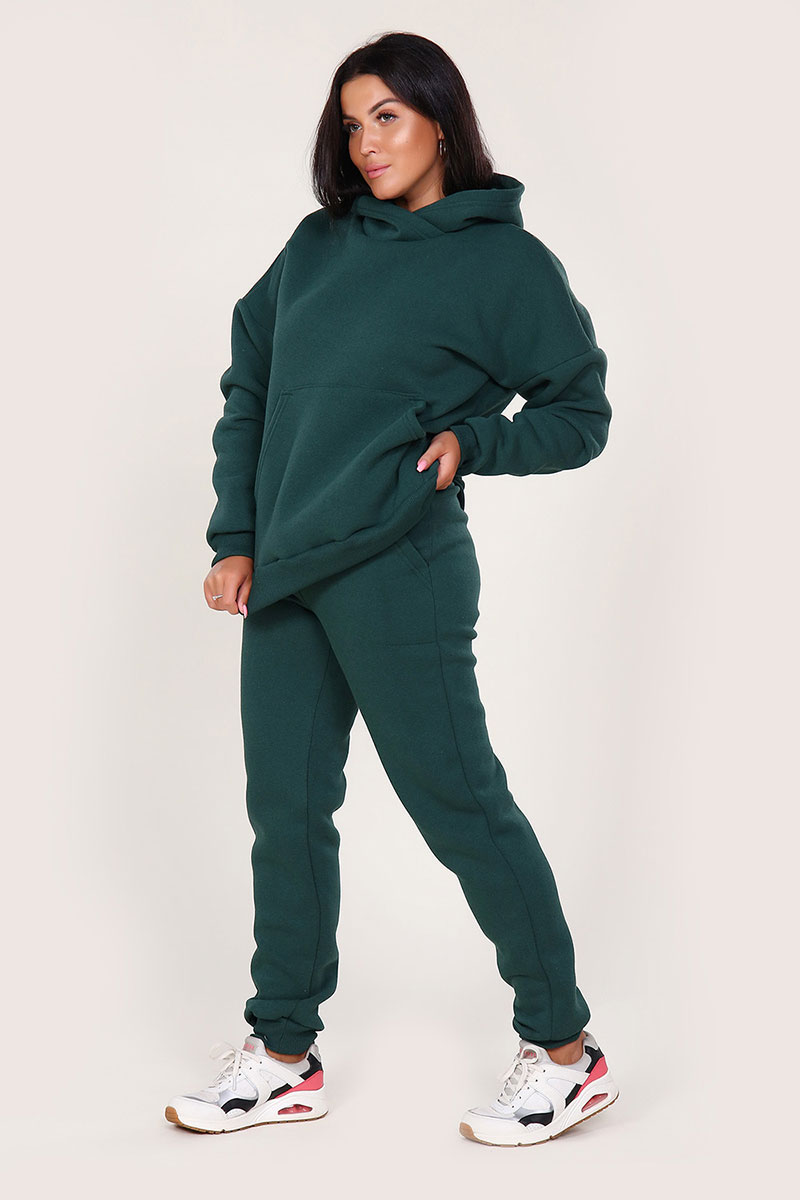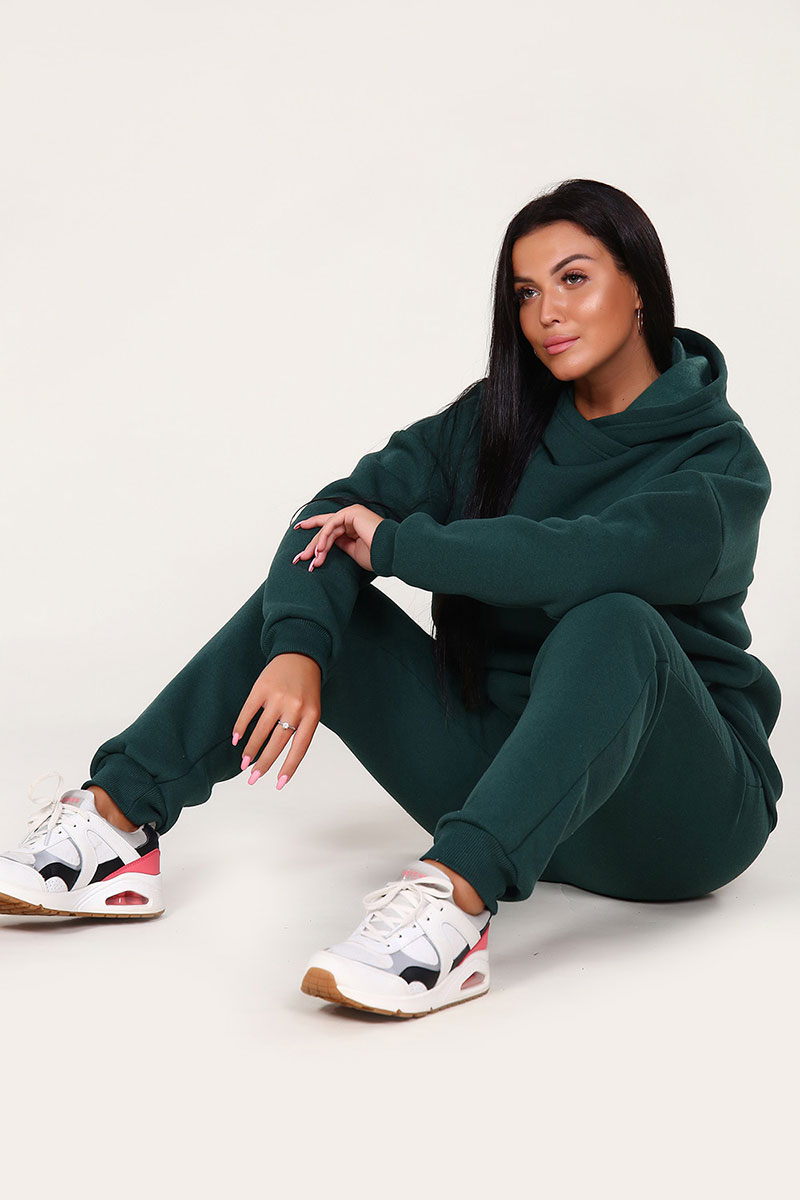 Костюм двойка женский 399 "XXI" футер 3-х нитка с начесом (р-ры: 46-56) изумрудный