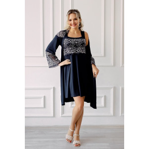 Пеньюар двойка женский "Мадонна" вискоза с кружевом (р-ры: 42-60) синий
