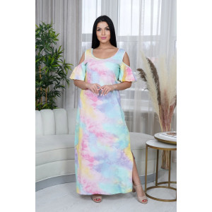 Представляем Вашему вниманию изящное женское платье "Новелла", изготовленное из 100% натурального хлопка. Длинное с разрезами по бокам платье в форме трапеции дополняет рукав-волан с открытым плечом. Все это создает летний и приятный образ.