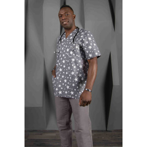 Куртка медицинская мужская М-286 поплин (р-ры: 44-66) звезды на сером